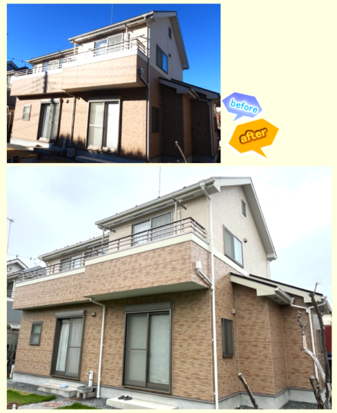 同じ外壁でも、塗装前後では印象が大きく変わります。